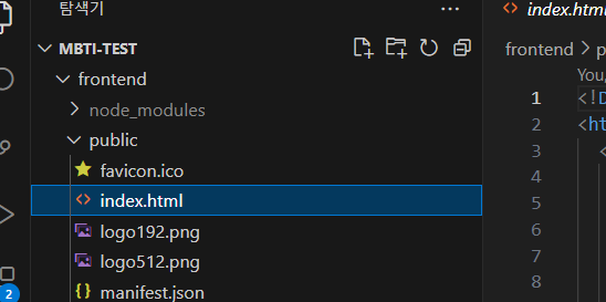 이제... frontend의 index.html이 메인으로 뜨도록 설정해주고 싶은데..